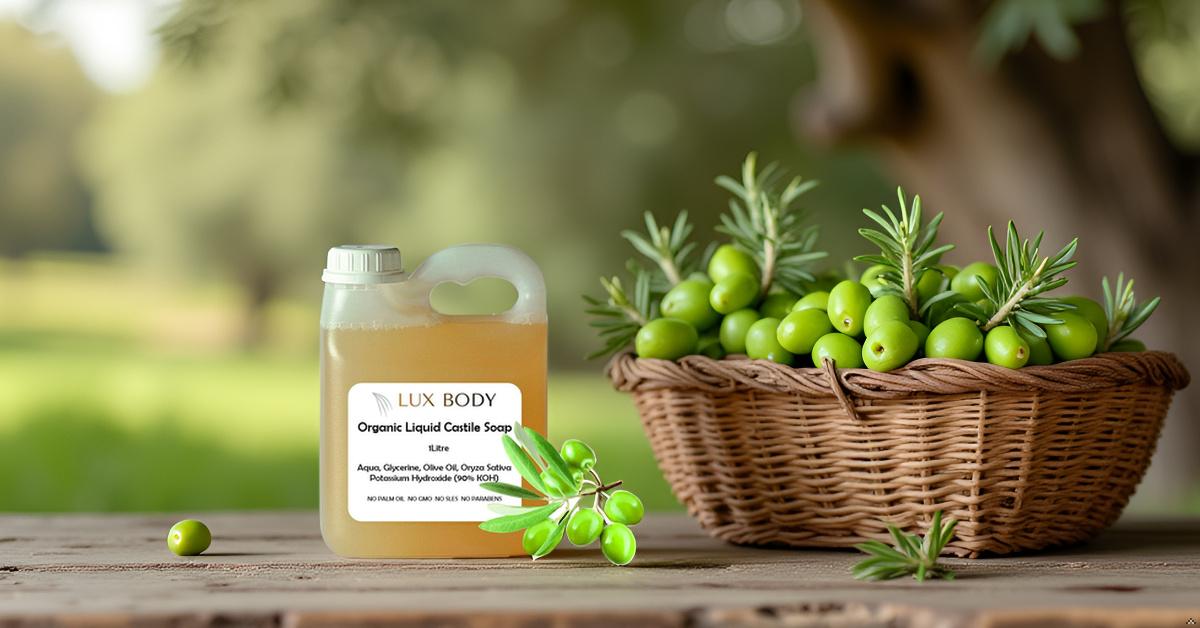 LUX BODY PURE ORGANIC LIQUID CASTILE SOAP 4 Litres A natural liquid soap base, pure and organic. Palm Oil Free Contains no SLS, SLES or Parabens. Essential oils can be added to it for fragrance and can be thickened with salt (Sodium Chloride) if required.  Can be beautifully coloured  with...